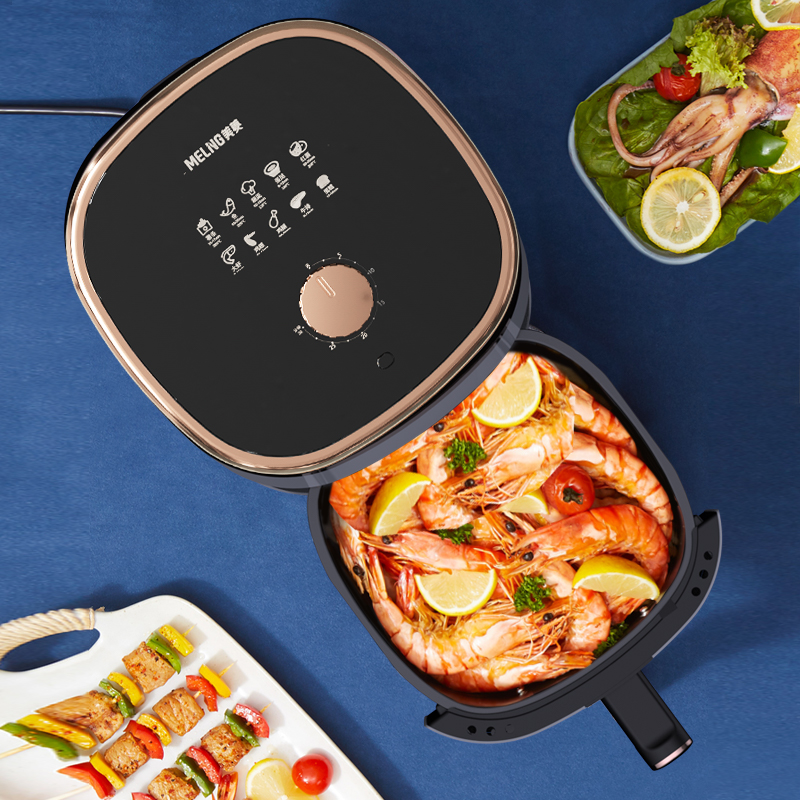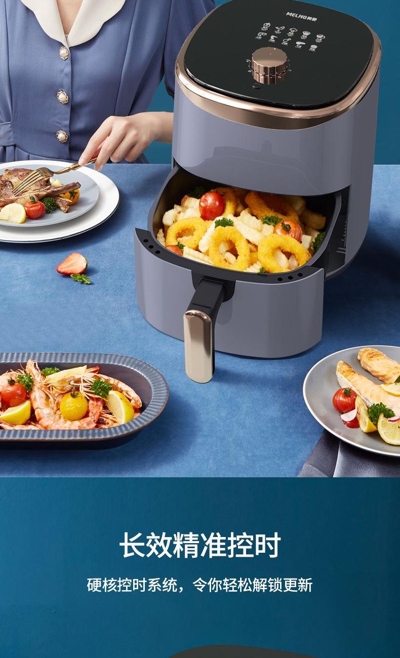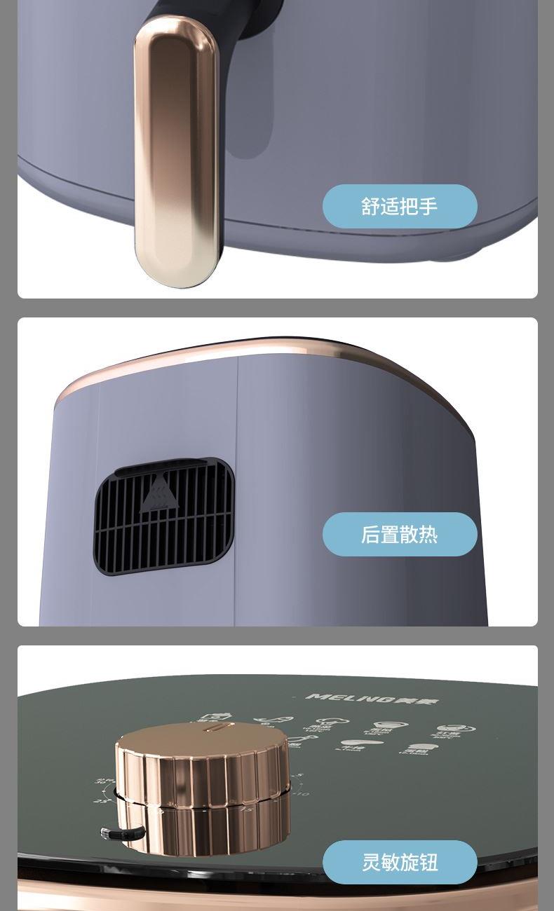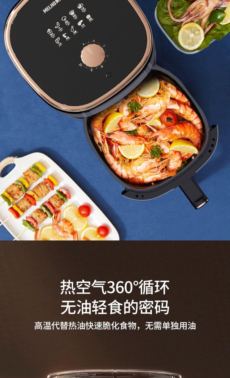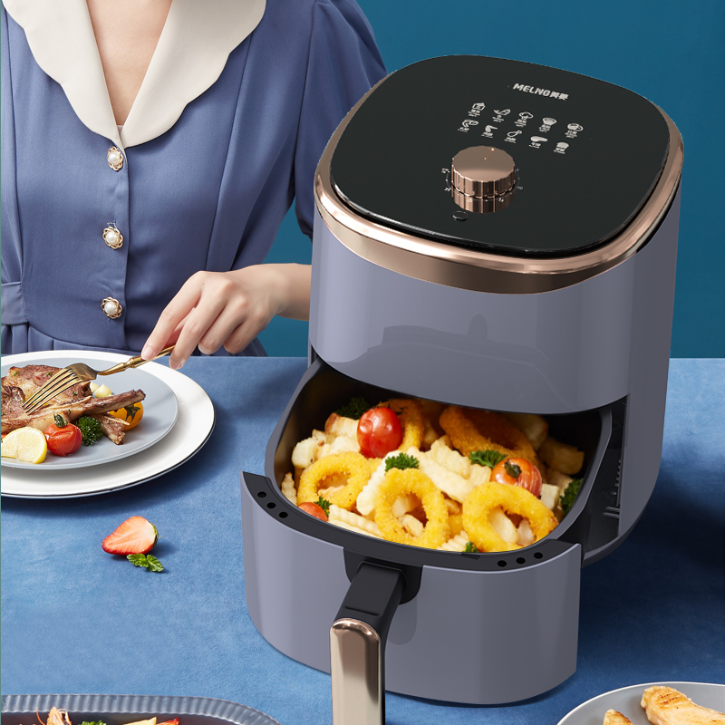 彩包尺寸:315*315*335mm 外箱尺寸:327*327*359mm 单台毛重:4.5kg 单台净重:3.9kg 产品颜色:莫兰迪灰 包装材料:彩包+邮购包 额定电源:220V~ 额定频率:50Hz 额定功率:1400W 容 量:4.5L 产品条码:6936897516932 烘焙炸烤于一身,轻松解锁多样美食 | 大容量,1400W大火力 ,单旋钮 | 食品级不粘涂层,餐后清洗无烦恼 | 一旋定时操作,方便快捷