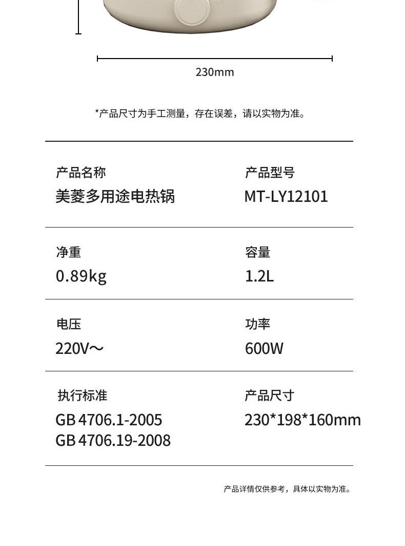 美菱MT-LY12101多用途电热锅(电煮锅)