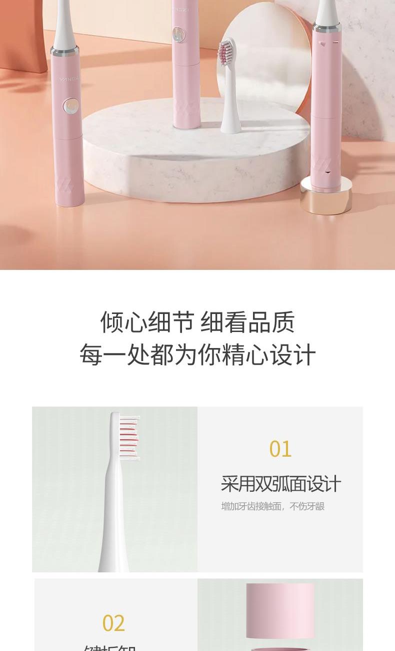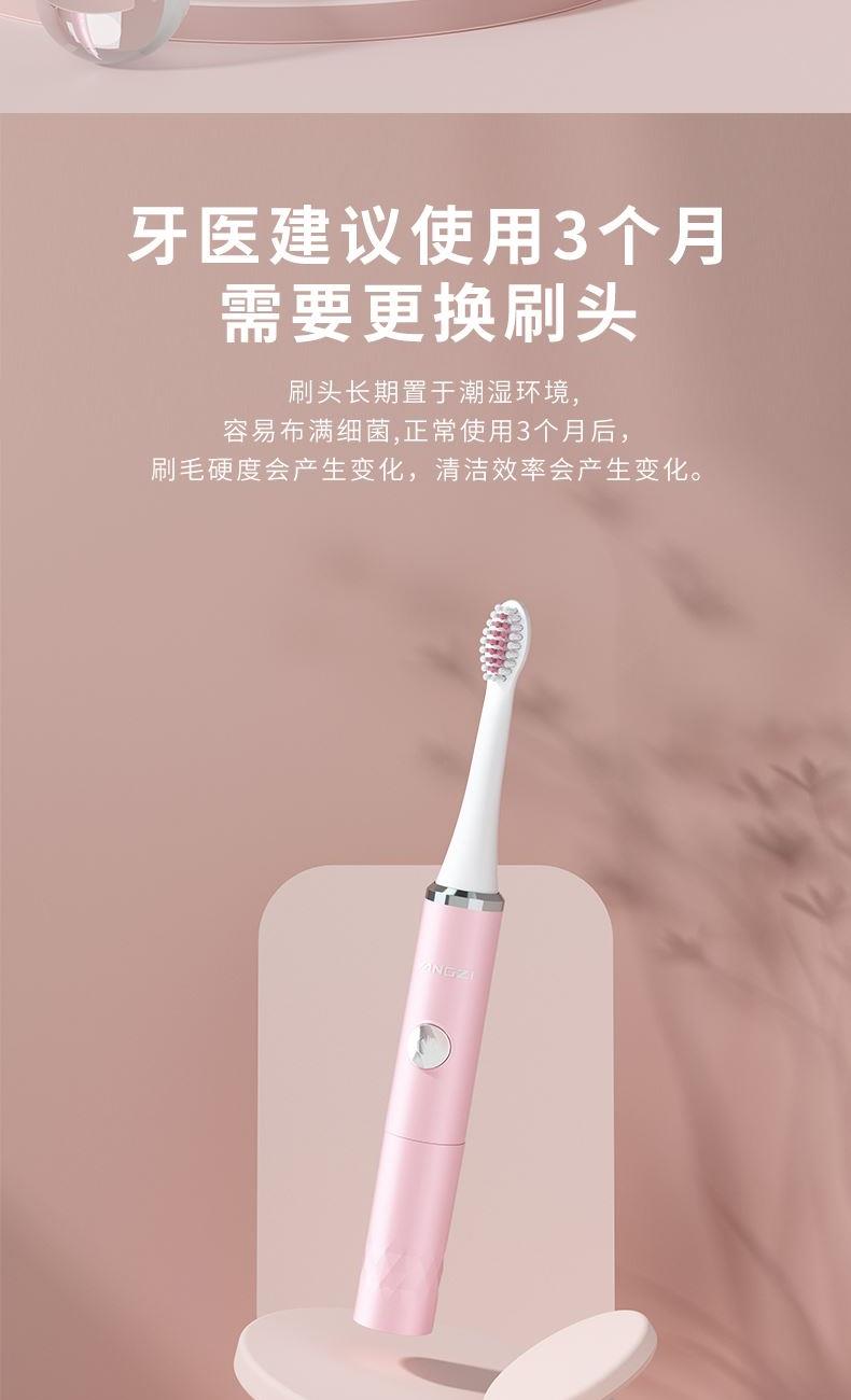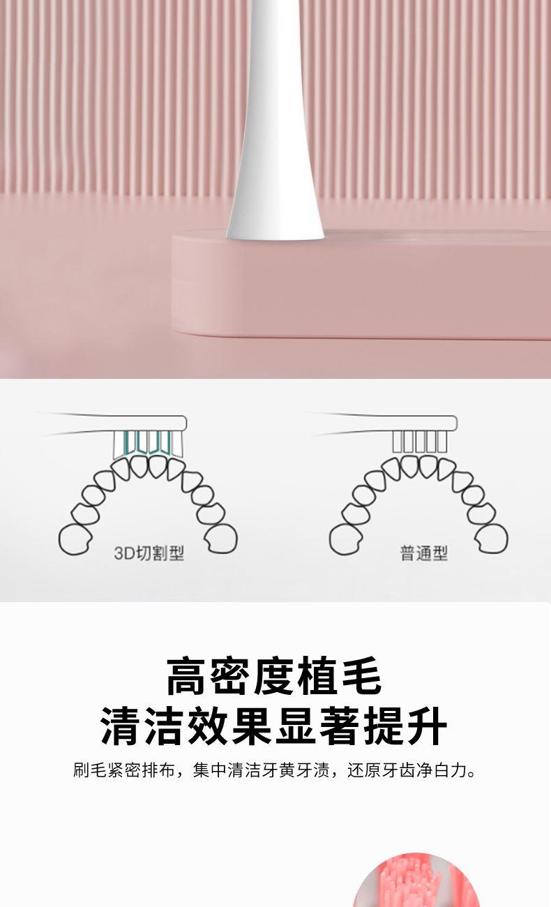 包装尺寸:50*26*220mm 外箱包装:470*460*570mm 包装材料:彩包 额定电压:1.5V~ 产品功率:1W 单台净重:0.1kg 材 质:ABS 刷 头:2个 双面弧设计,贴合牙齿,不留死角 高密度植毛,清洁效果显著提升 高效瓦解牙渍,深入牙缝亮白牙齿