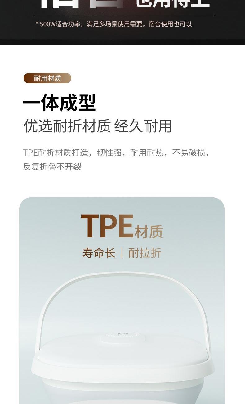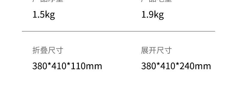 折叠尺寸:380*410*110mm 展开尺寸:380*410*240mm 包装尺寸:390*120*418mm 外箱包装:630*435*800mm 包装材料:彩包 额定电压:200V~ 产品功率:500W 额定频率:50Hz 单台毛重:1.9kg 单台净重:1.5kg 材 质:TPE 一体成型,折叠、防滑设计 小巧不占地,灵活收纳 便携提手,方便拿取 凹凸颗粒,多角度按摩