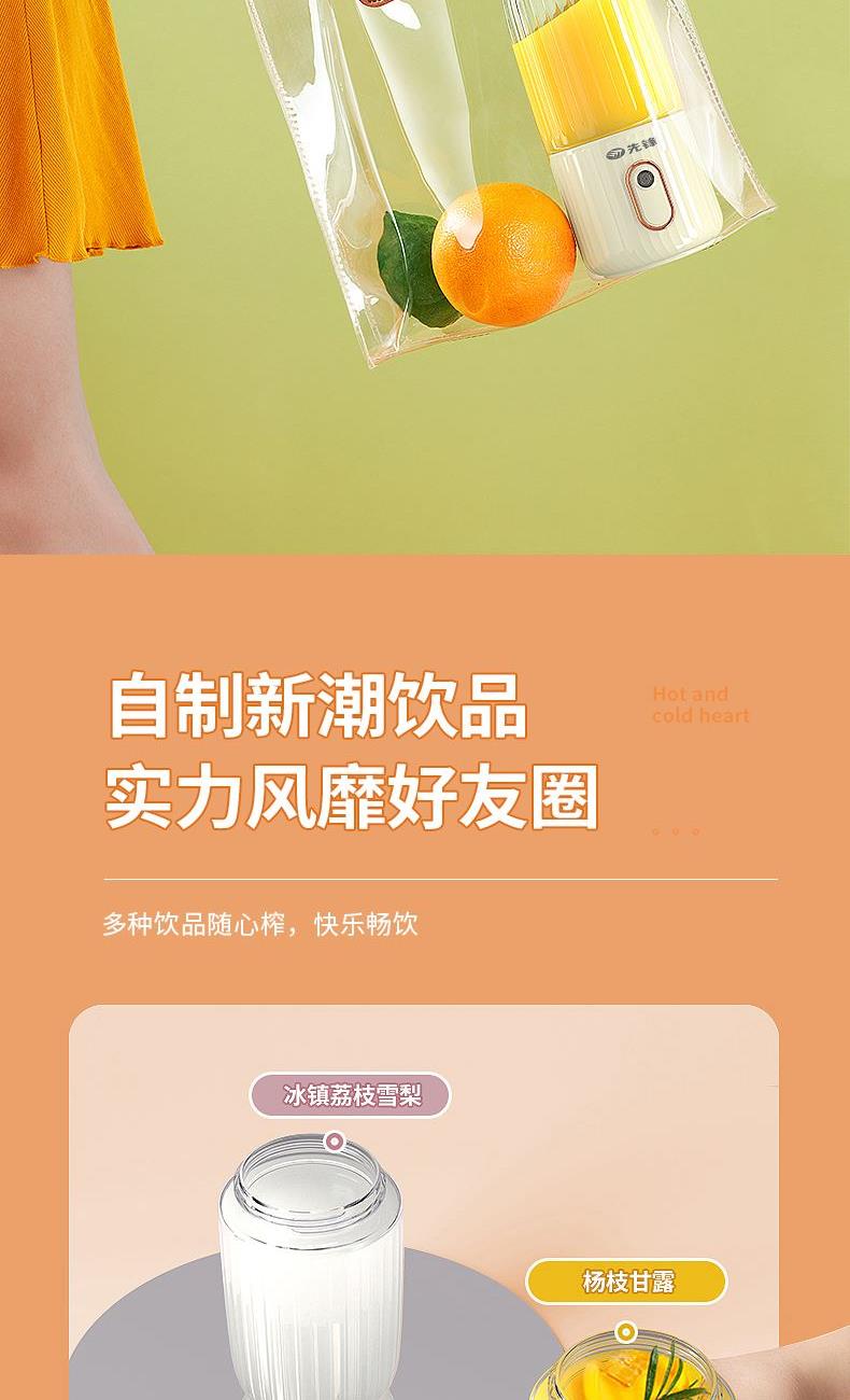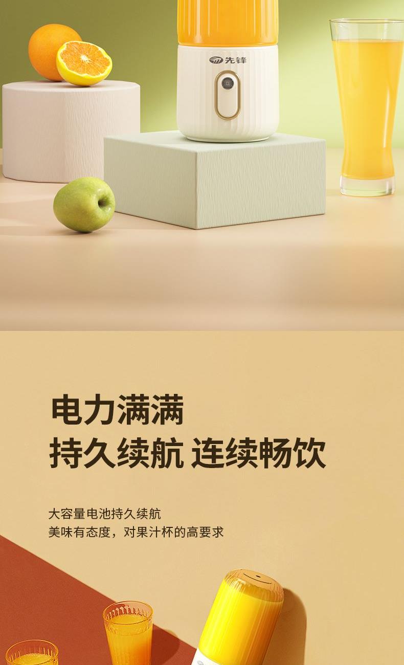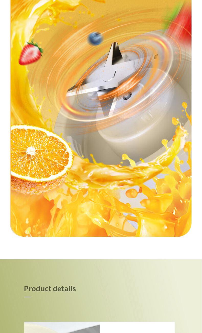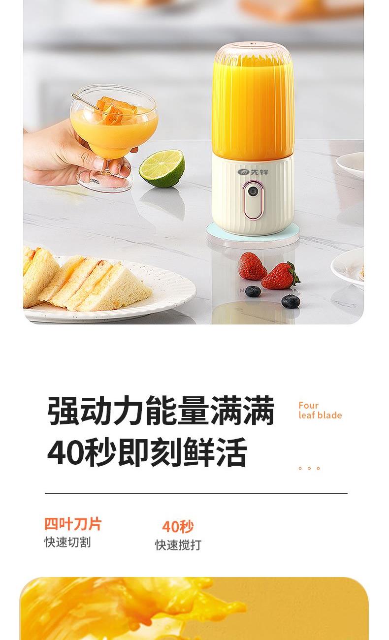 280ml容量,出行好帮手 | 食品级PC材质,安心使用 | 刀头304不锈钢 | 4叶刀头搅拌细腻 | 一键启动模式 | tpye-c充电,无线便携,现榨鲜喝 | 小巧轻盈,从容携带