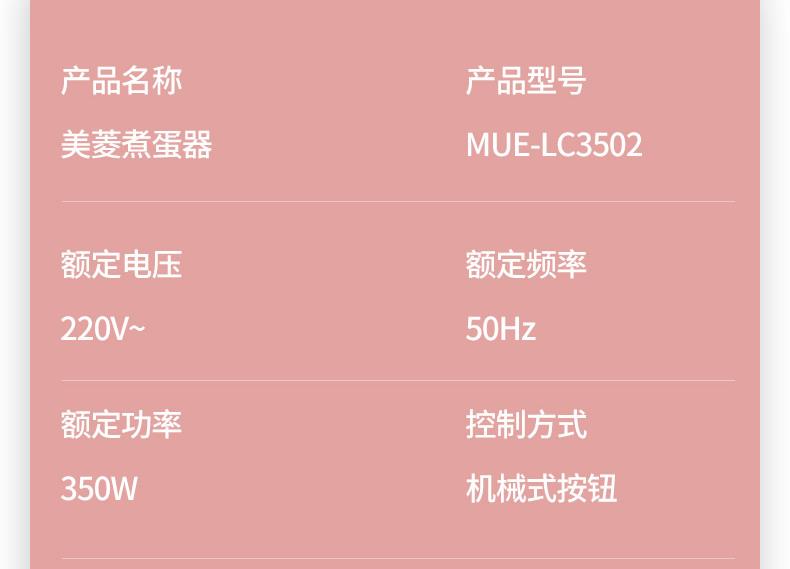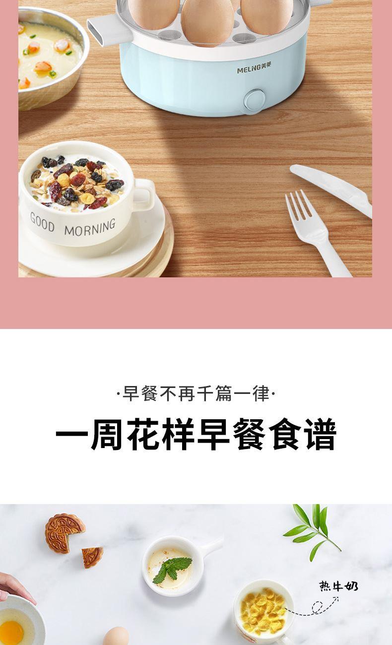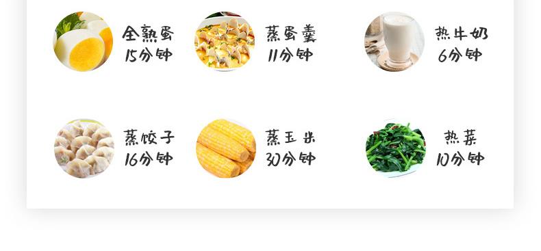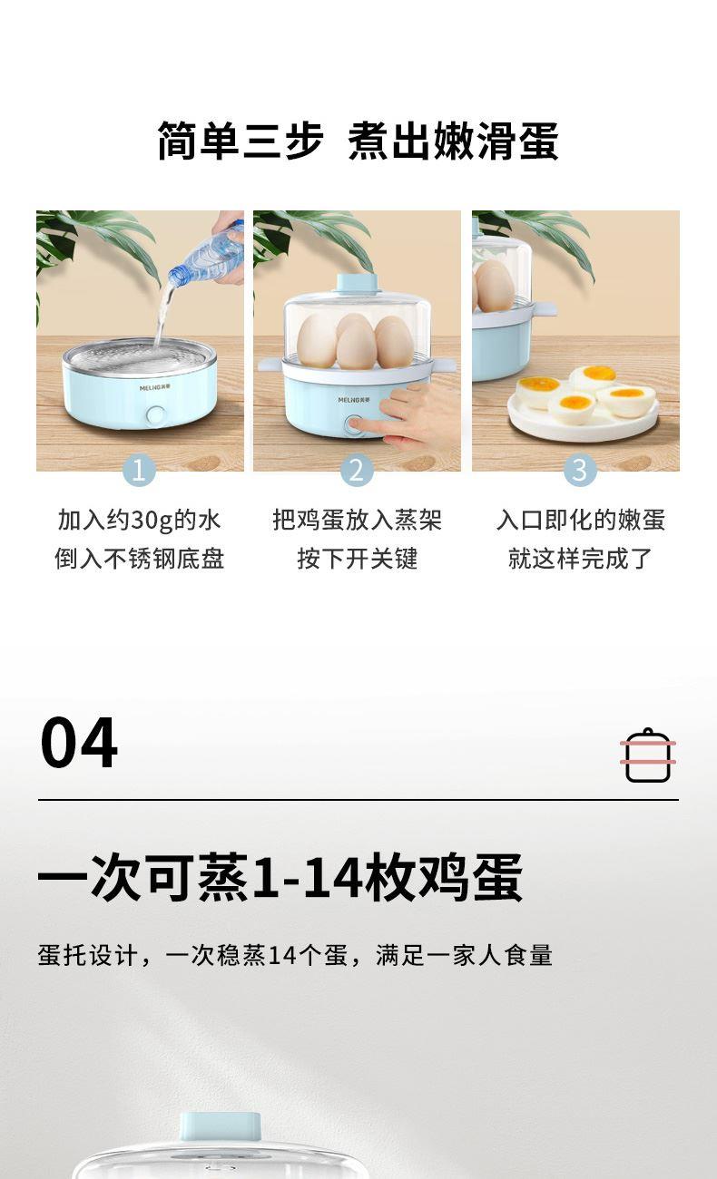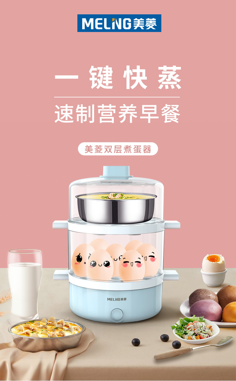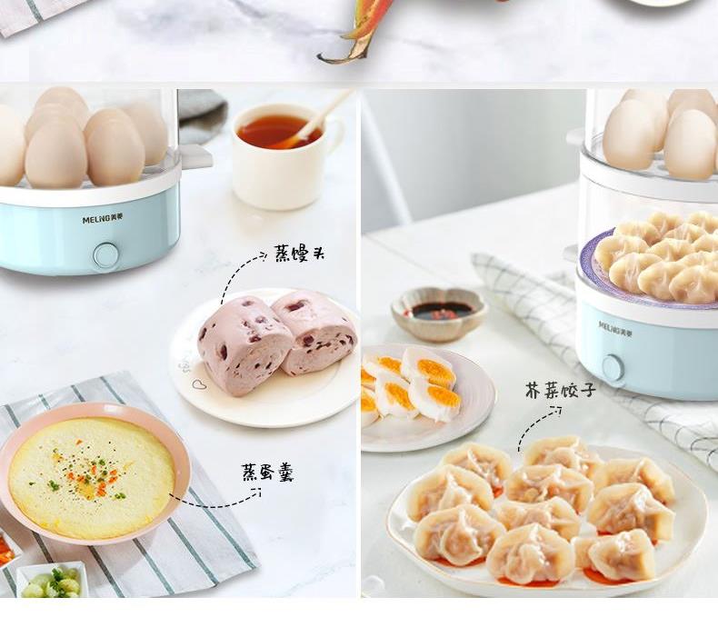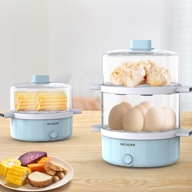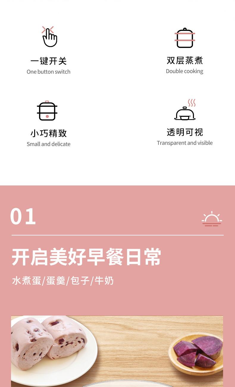 产品尺寸:198*154.5*235mm 包装尺寸::175*175*245mm 外箱尺寸:540*360*510mm 单台毛重:0.78kg 单台净重:0.6kg 包装材料:彩包 额定电源:220V~ 额定频率:50Hz 额定功率:350W 产品颜色:蓝色 产品条码:6907778940290 单双蒸煮,自由组合 | 304不锈钢发热盘,经久耐用 | PP外壳材质,高温不产生双酚A,更安全 | 一键式按钮,操作简单,更易上手。