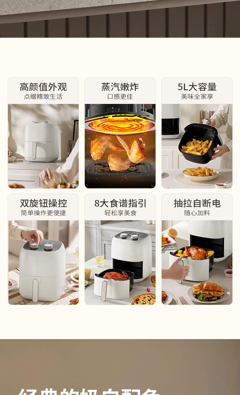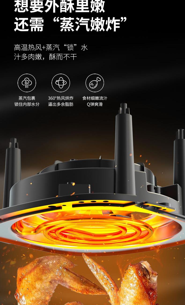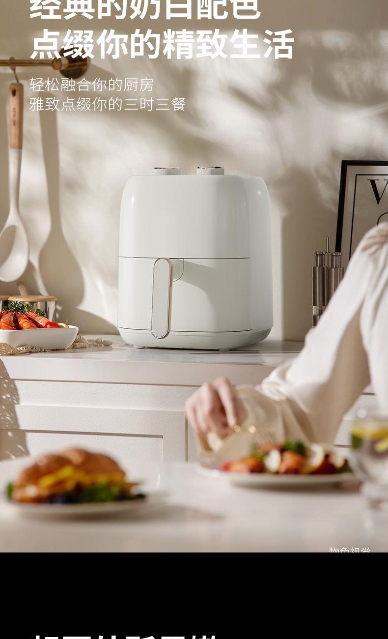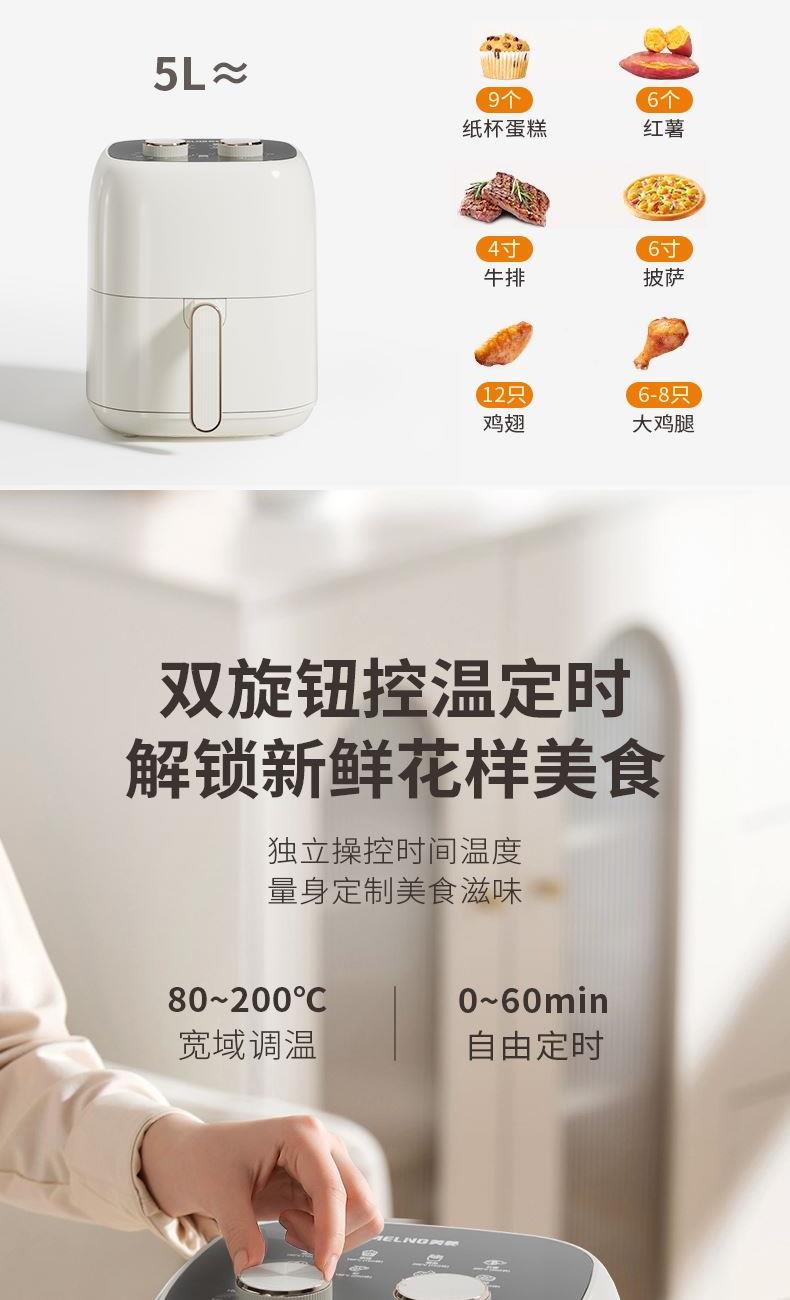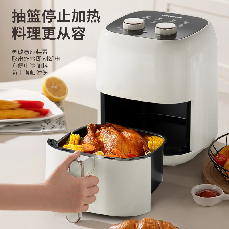 4.5L大容量,大小刚刚好 | 1400W大功率,热风立体循环 | 健康烹饪,可在不滴油的情况下进行烧烤,烘烤,煎烤,减少油脂摄入 | 360°热循环技术去除油脂,口感好,脂肪少 | 酥制,使食物外表酥脆,里面滑嫩。