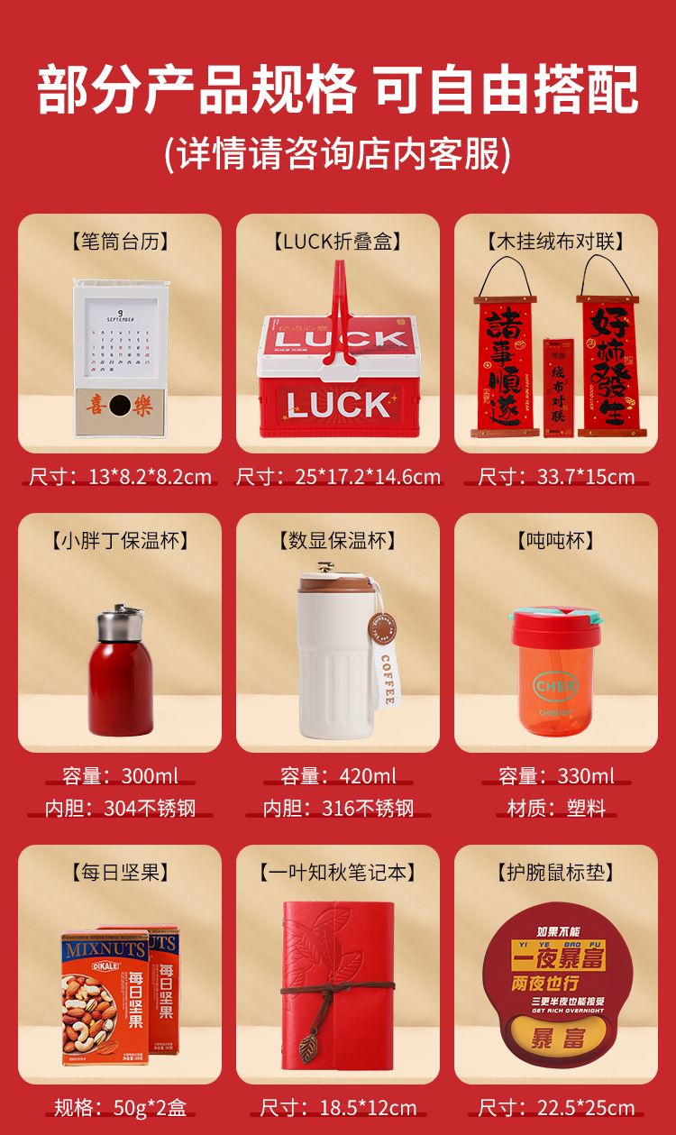 编码:DAL1006 内配:按摩捶+仿真丝眼罩+五指按摩梳+蜜桃乌龙茶+吨吨杯 注:报价只对应主图款,详情页其他款式请具体联系,更多产品资料私聊领取