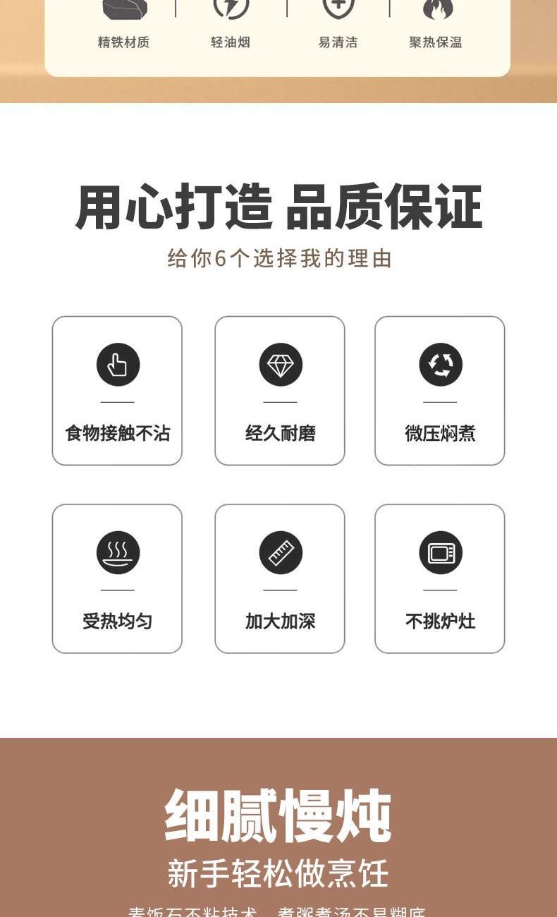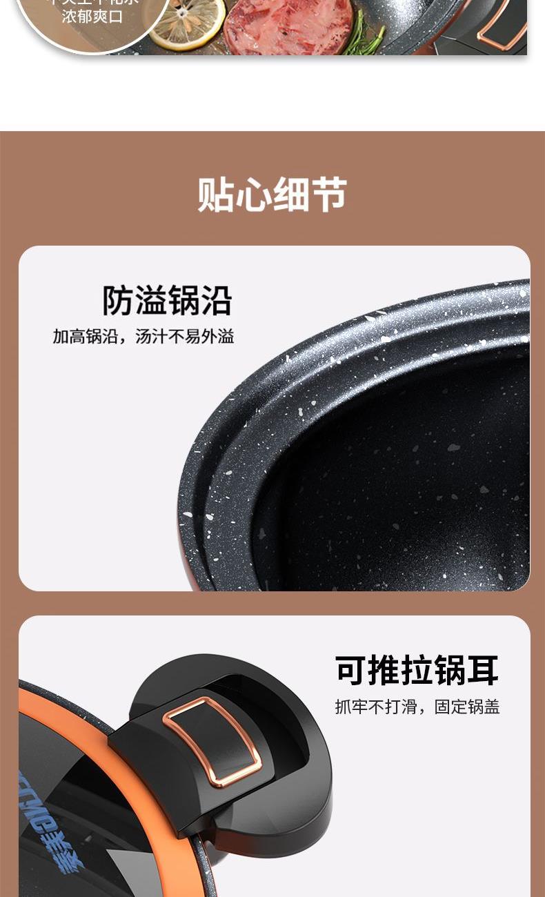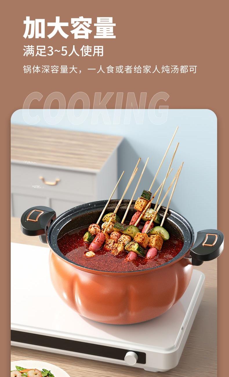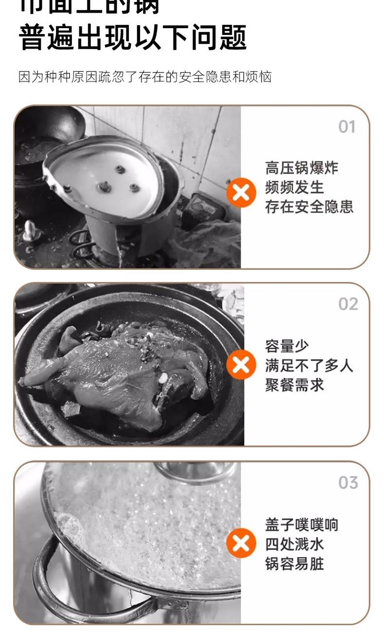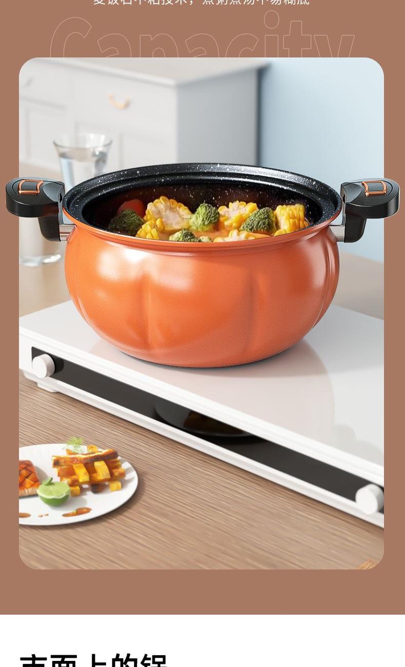 包装尺寸:285*285*175mm 单台毛重:2.4kg 单台净重:2.1kg 产品颜色:橙色 包装材料:电商包 产品条码:6936897528584 密封性强,微压聚能快炖 | 双耳防烫,防溢锅沿,稳定锅盖,气阀泄压保护设计 | 大容量,一锅多用