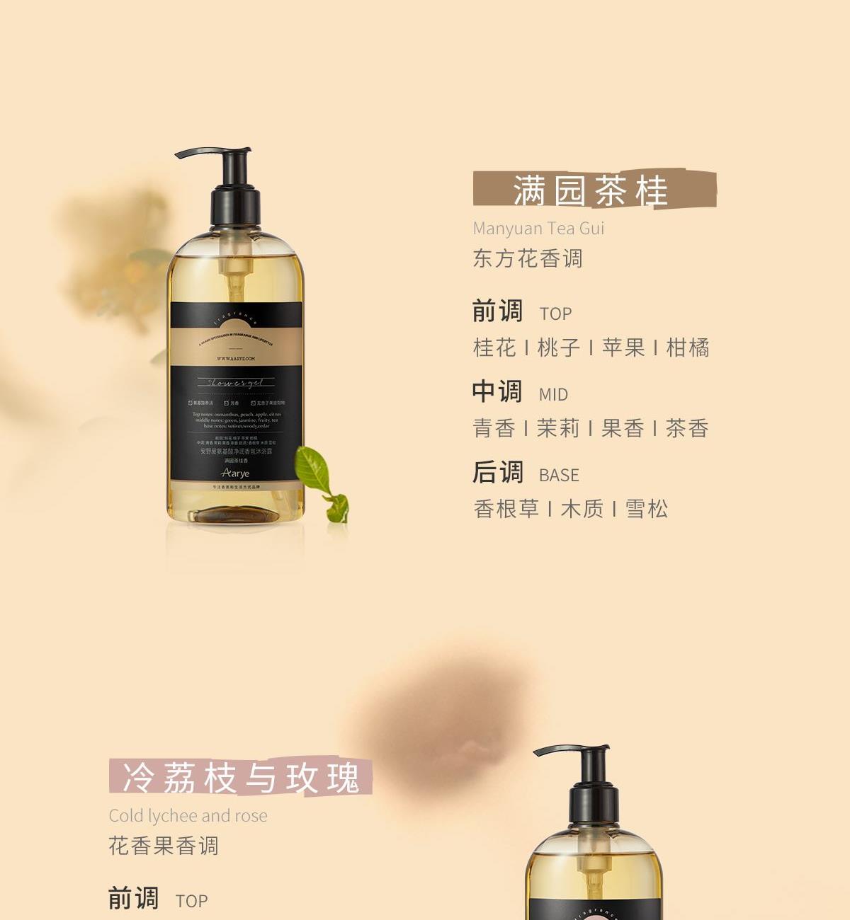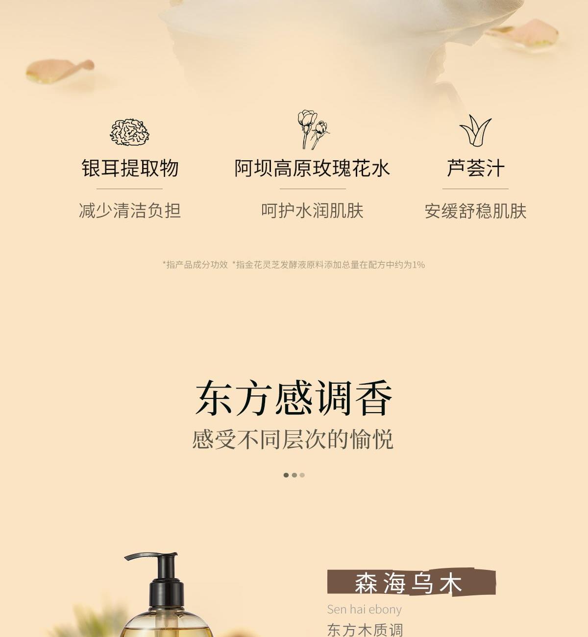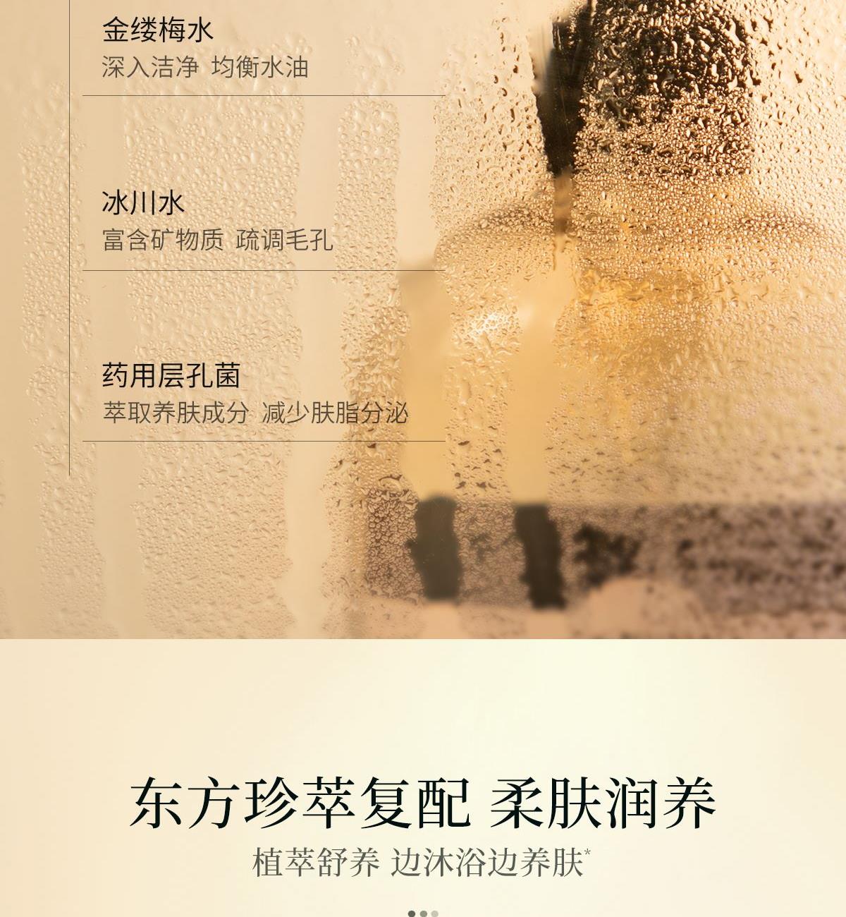 75g 满园茶桂 冷荔枝与玫 竹雾森林 1%金花灵芝发酵液,呵护肌肤屏表 东方珍萃复配柔肤润养,植萃舒养边沐浴边养肤 足量添加30%氨基酸表活,提供净澈温润的清洁保障