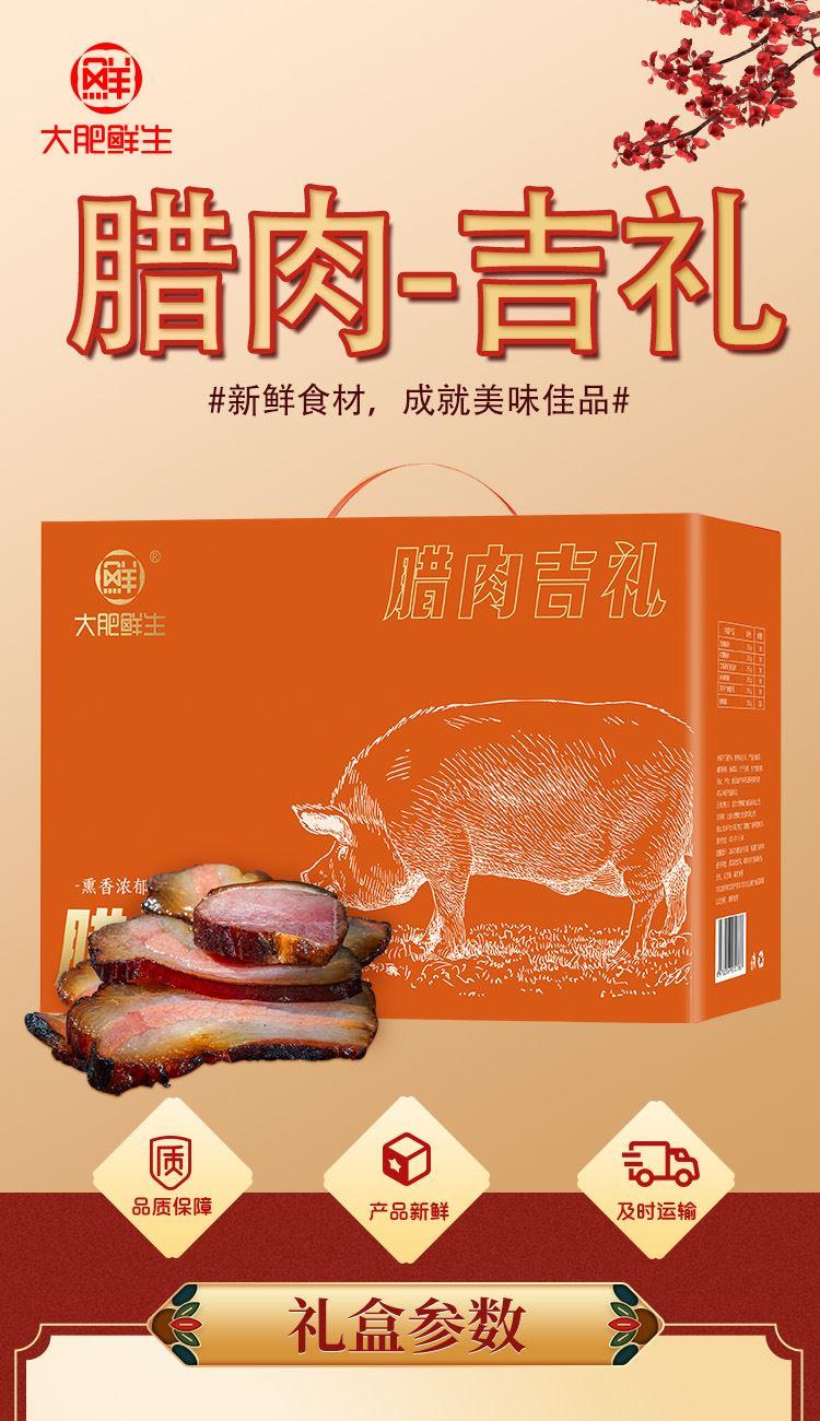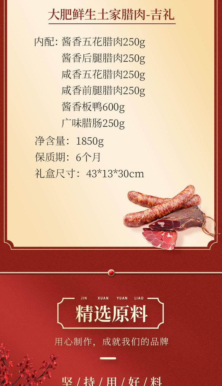 酱香五花腊肉250g*1袋 酱香后腿腊肉250g*1袋 咸香五花腊肉250g*1袋 咸香前腿腊肉250g*1袋 酱香板鸭600g*1袋 广味腊肠250g*1袋