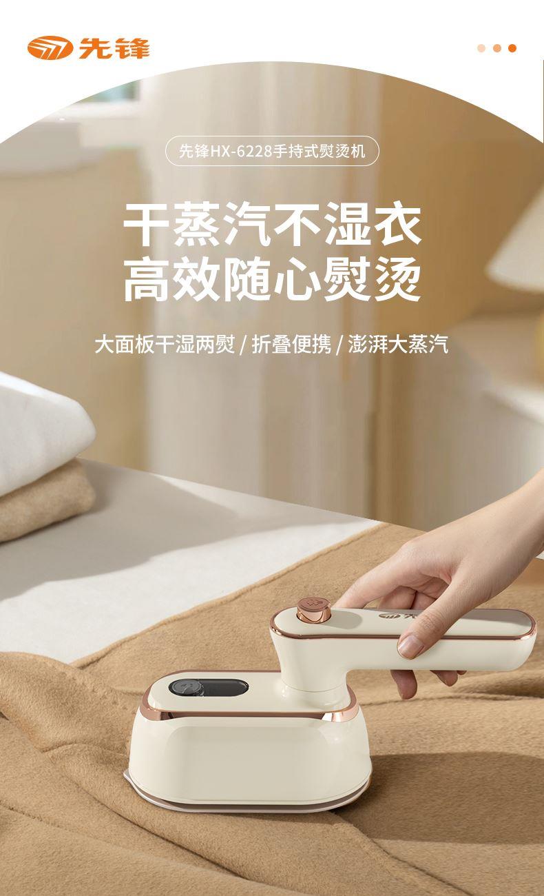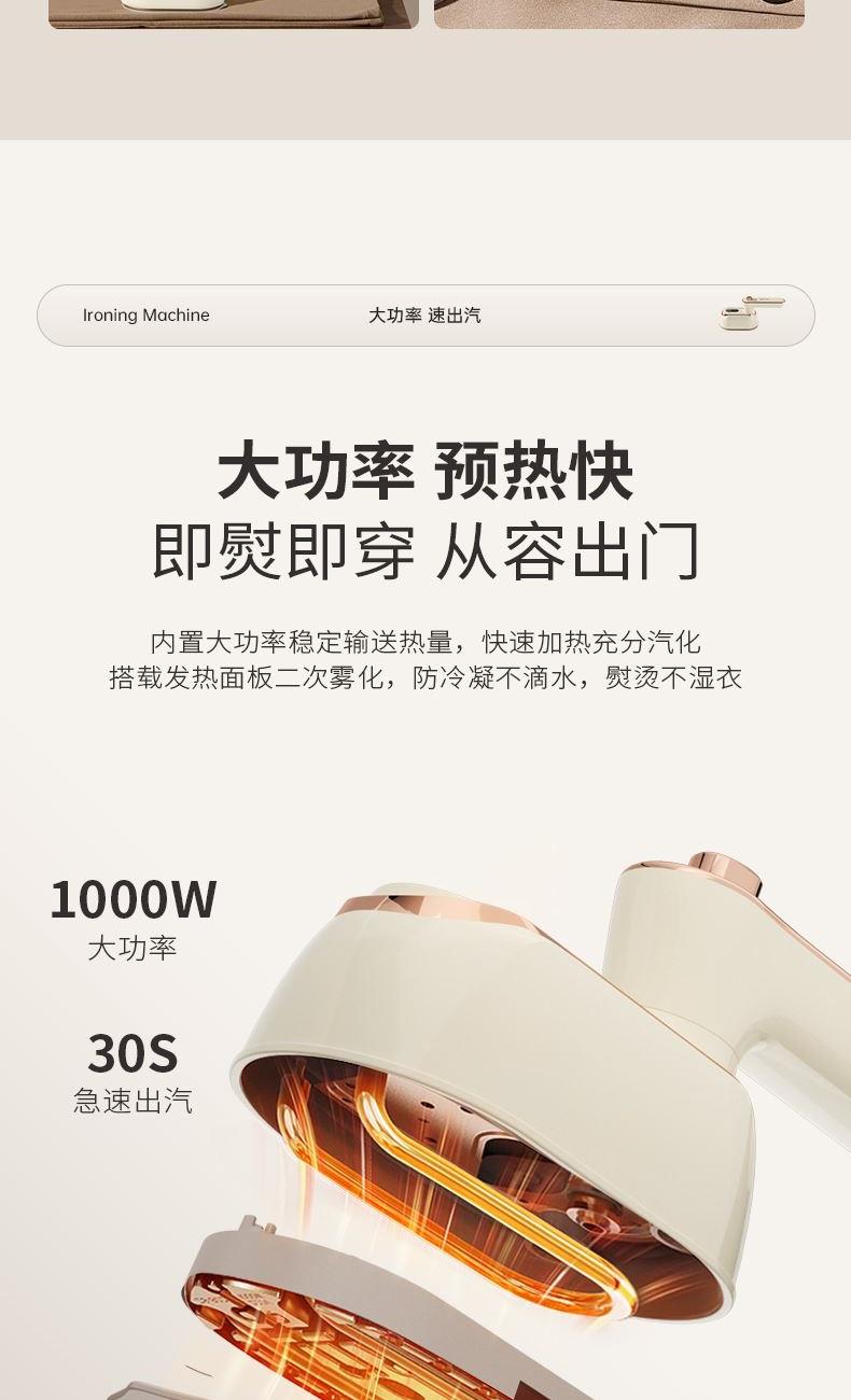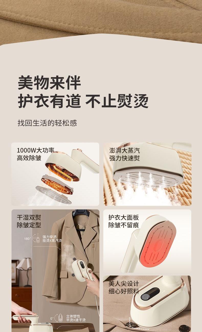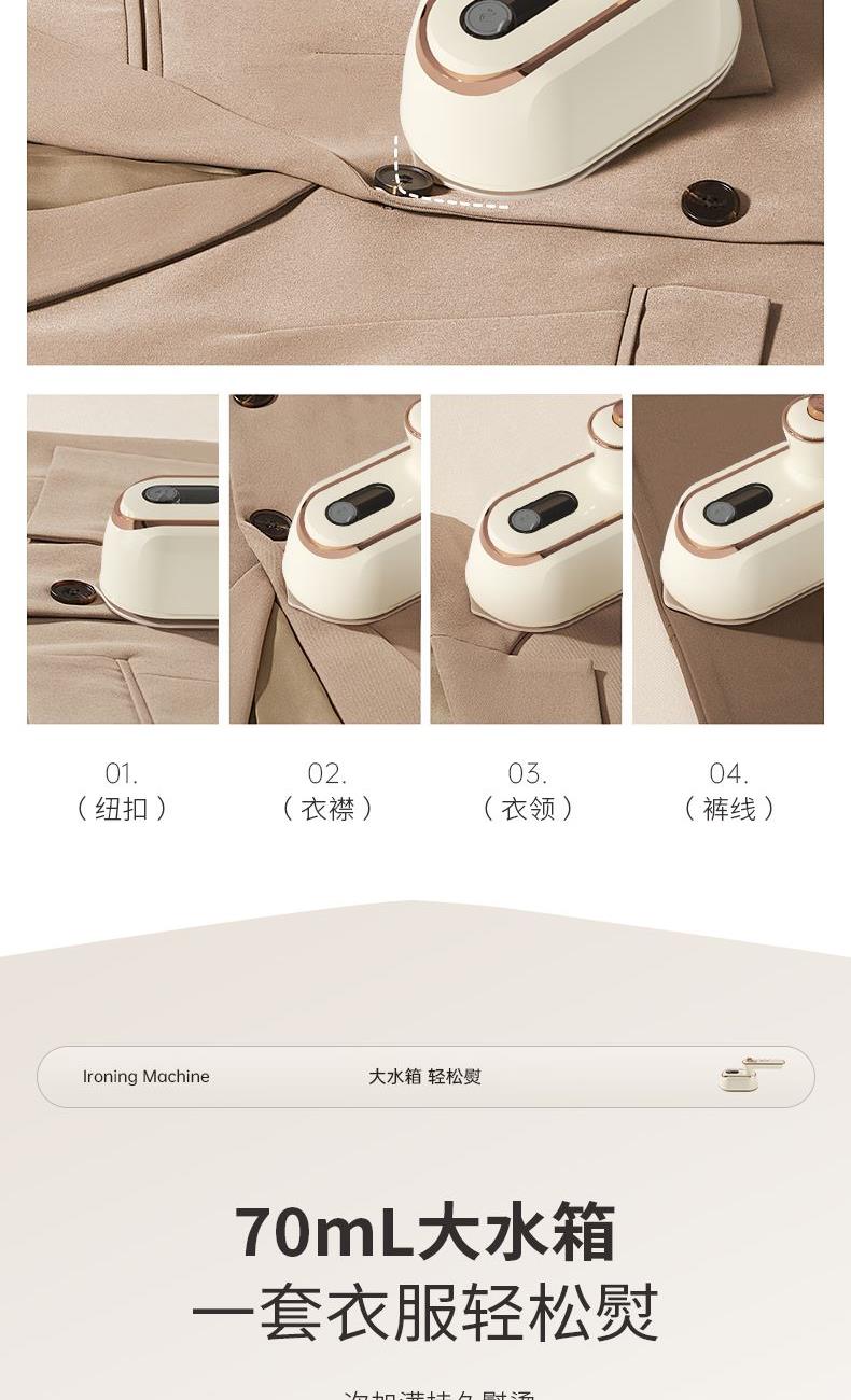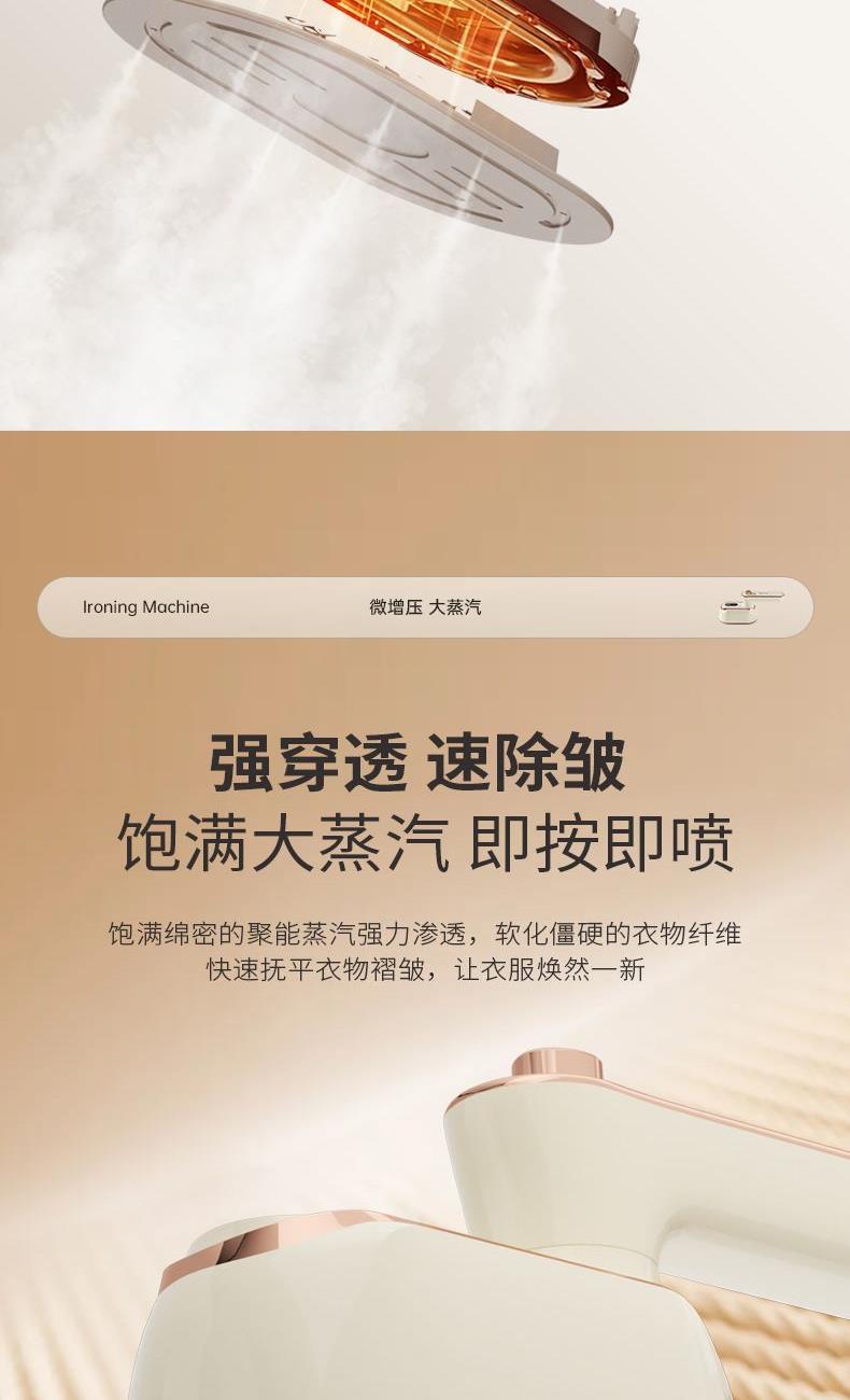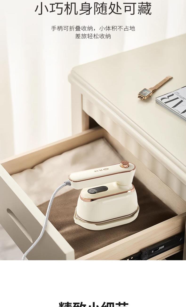 彩包尺寸:170*110*110mm 外包尺寸:460*355*580mm 单台毛重:0.52kg单台净重:0.5kg 额定电压:220V 额定功率:1000W 产品条码:6977197070380 包装材料:彩盒+大外箱 产品尺寸:200*80*120mm 1000W精控大蒸汽,深层穿透快速抚平,不伤衣熨烫效果肉眼见,不挑面料快速熨平,小巧体积易收纳差旅便携倍轻松