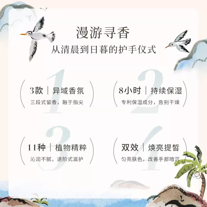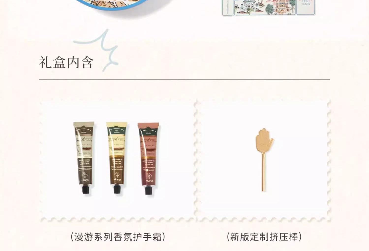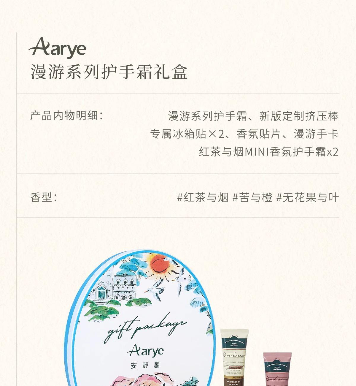 香氛护手霜75gx3(红茶与烟/无花果与叶/苦与橙)香氛护手霜10gx2(红茶与烟)+冰箱贴x2香氛贴片+漫游手卡+手掌挤压器