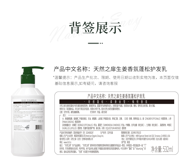 天然之扉生姜香氛蓬松护发乳532mL