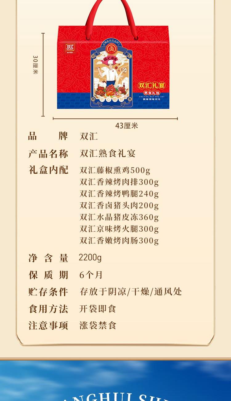 双汇藤椒熏鸡500g 双汇香辣烤肉排300g 双汇香辣烤鸭腿240g 双汇香卤猪头肉200g 双汇水晶猪皮冻360g 双汇京味烤火腿300g 双汇香嫩烤肉肠300g