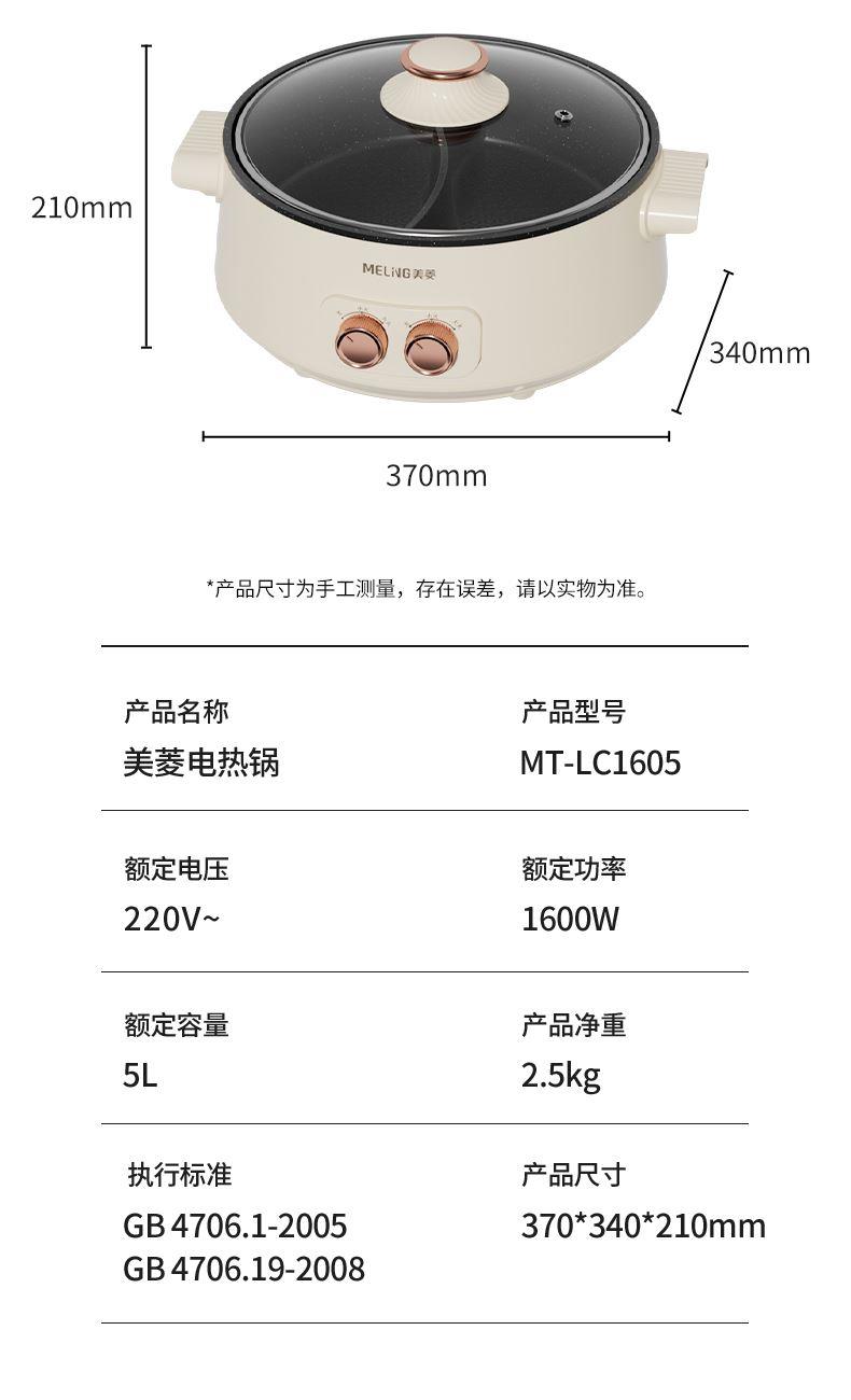 美菱MT-LC1605电热锅(鸳鸯电火锅)