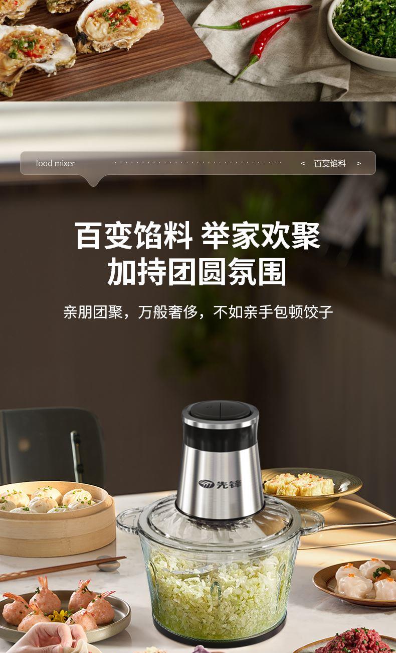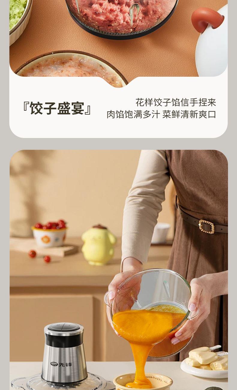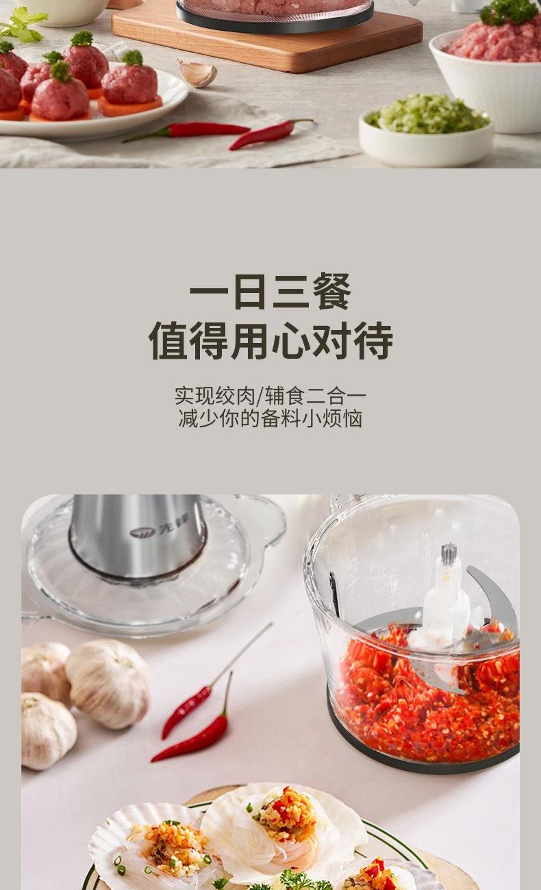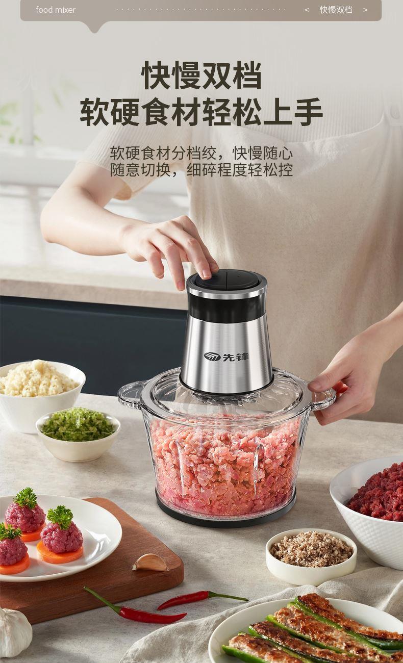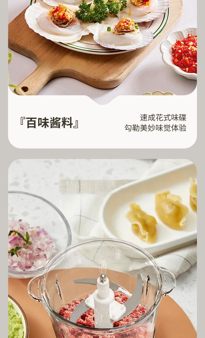 彩包尺寸:190*190*285mm 黄包尺寸:192*192*287mm 单台毛重:2.1kg 单台净重:1.7kg 额定电压:220V 额定功率:300W 产品条码:6923046249766 包装材料:彩盒+邮购盒 容量:2L产品尺寸:190*225*255mm 配合立体四层刀片,快慢两档任你选择,查看绞碎状态密封保护洁净,绞碎快速细腻,无需等待