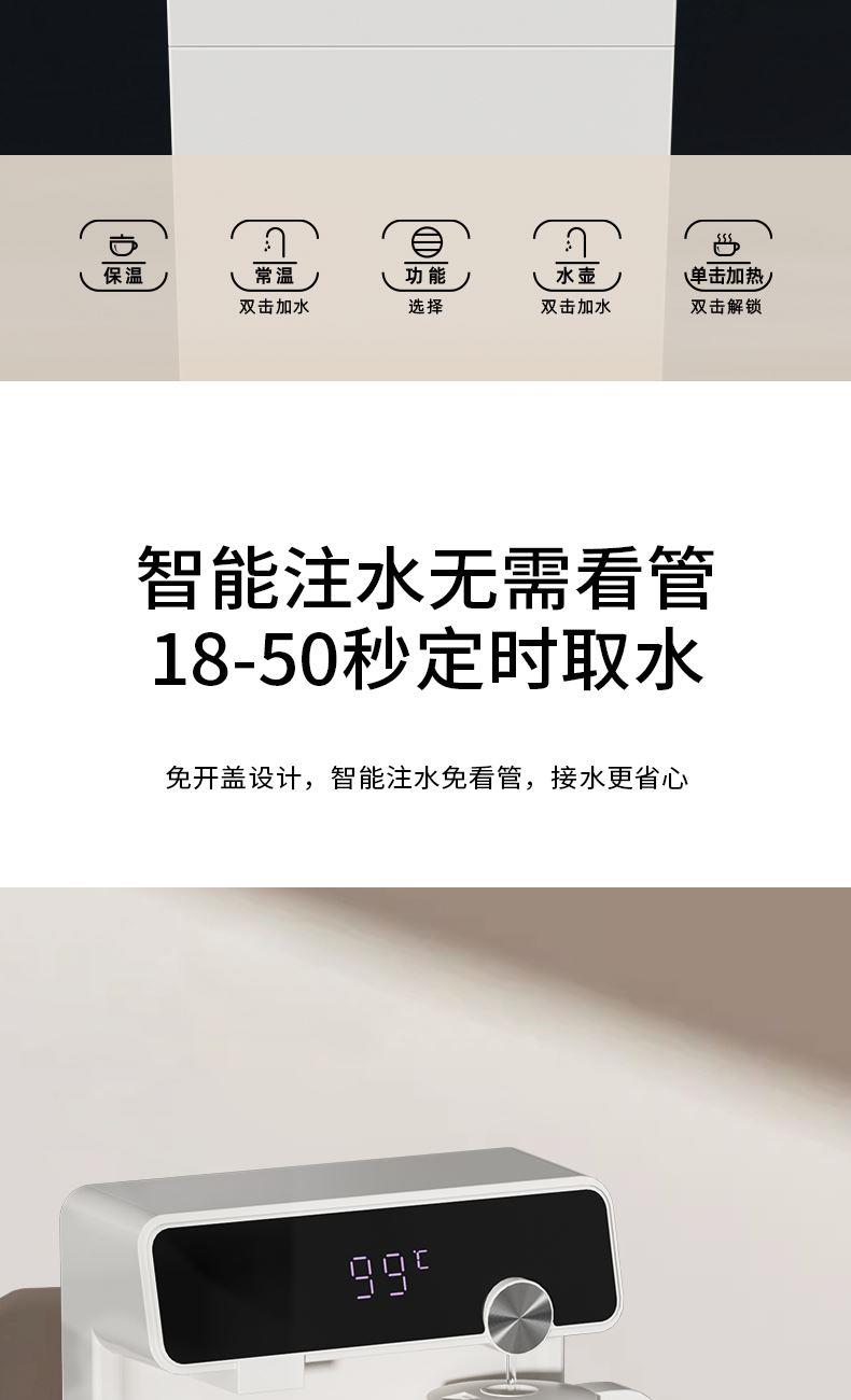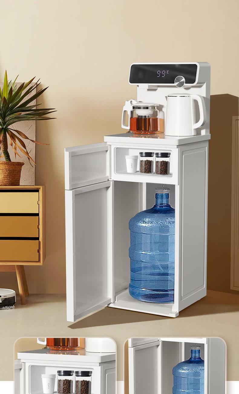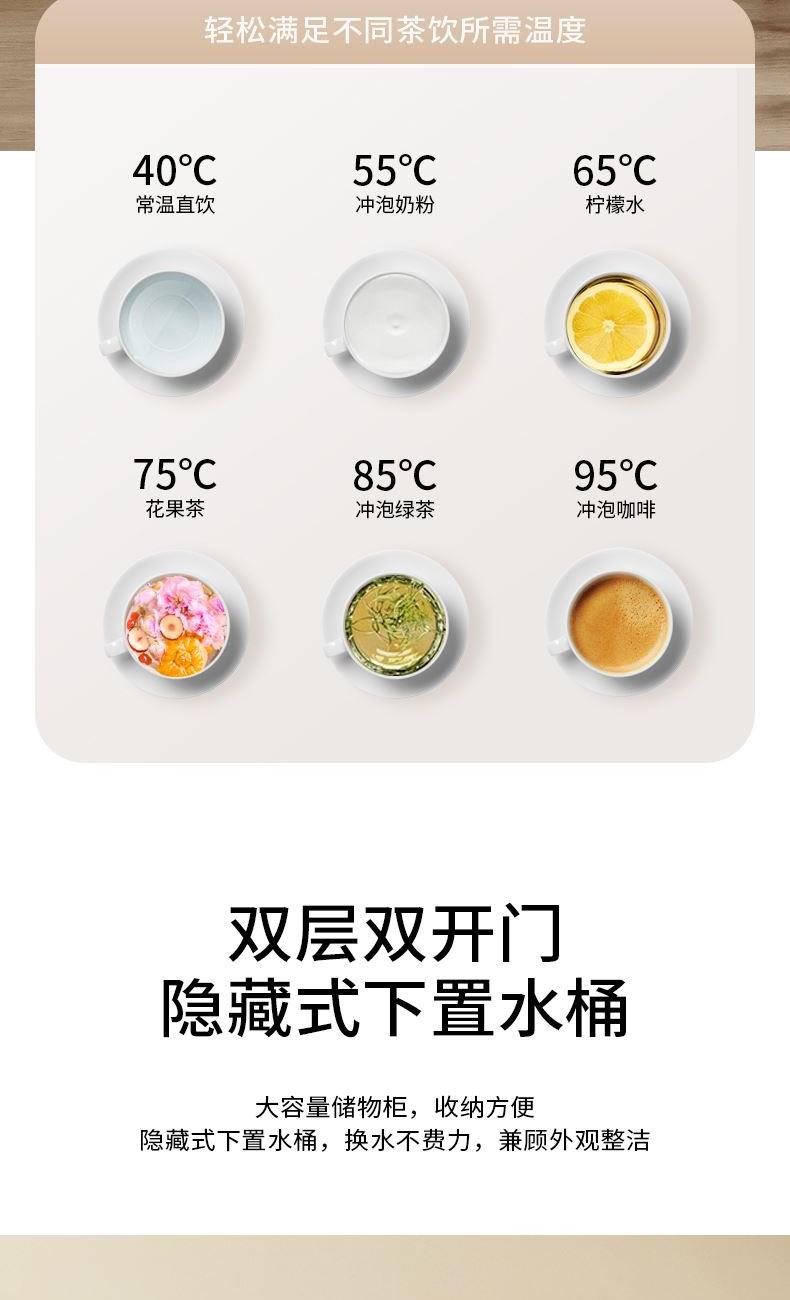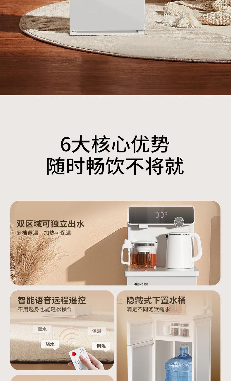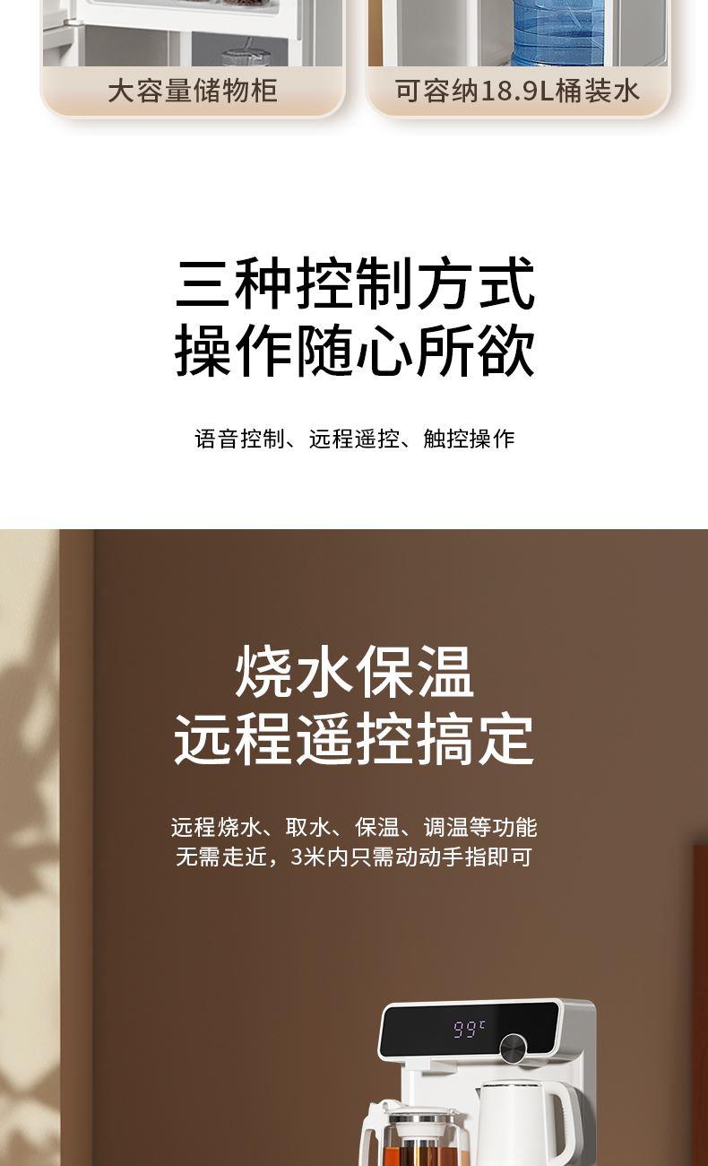 多种控制方式,远程遥控,台面触控,语音声控 | 一呼即应,随声而动,更加人性化,懂你的AI语音智能茶吧机 | 操作不用起身,即可远程操作,遥控操作更便捷 | 24小时长效保温,畅想温热水 | 收纳储物柜,方便水杯茶叶收纳 | 下至水桶,换水不用肩扛,免抬更轻松。