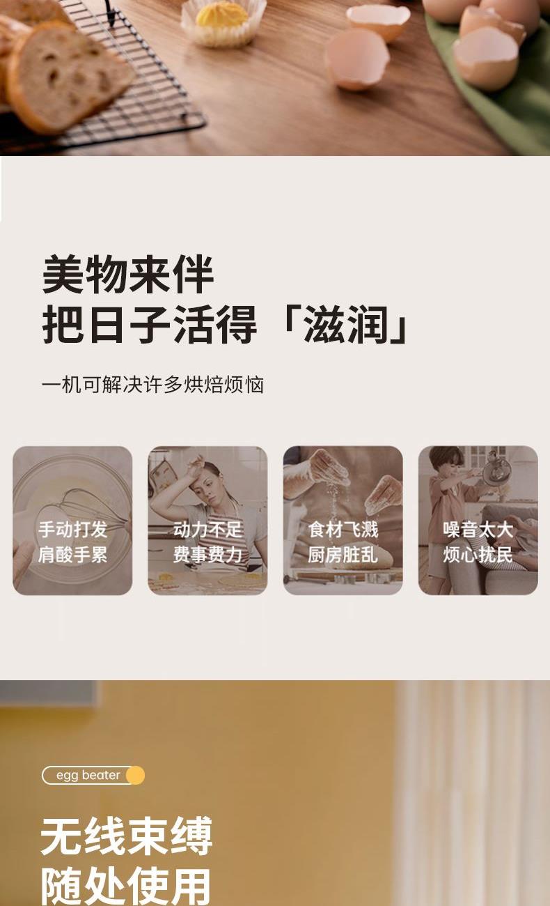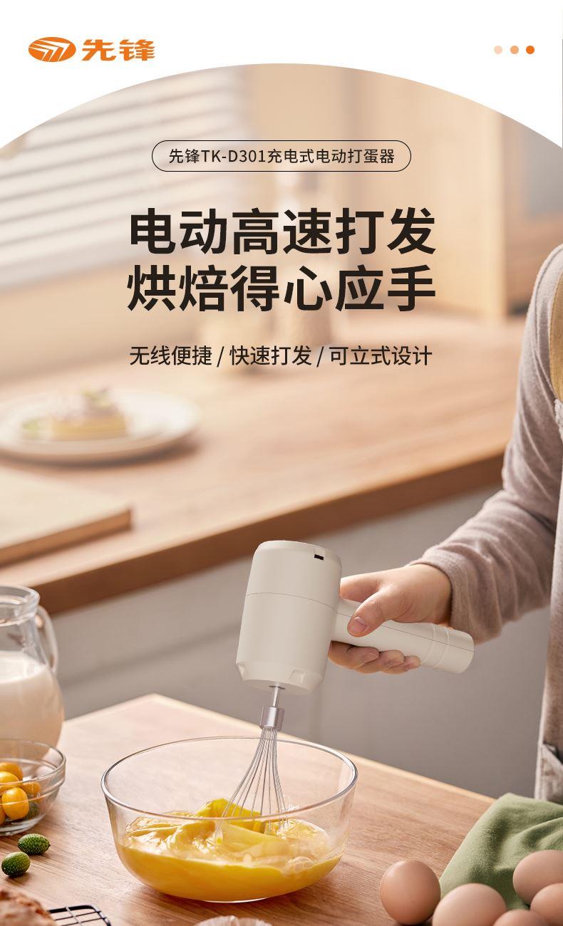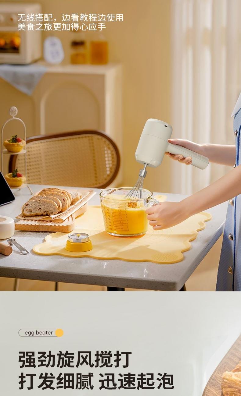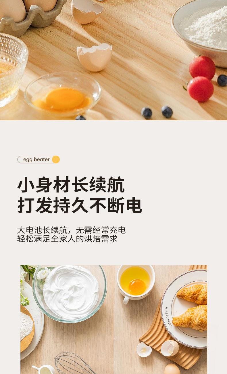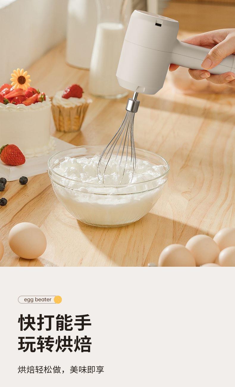 彩包尺寸:210*106*73mm 外箱尺寸:440*393*558mm 单台毛重:0.26kg 单台净重:0.22kg 额定电压:3.7V 额定功率:20W 产品条码:6977197070342 包装材料:彩盒+大外箱 产品尺寸:235*60*180mm 轻松打发的乐趣省去繁琐程序,不占空间纤细身形好收纳,一键开机即刻打发,大动力电机快速打发没难度