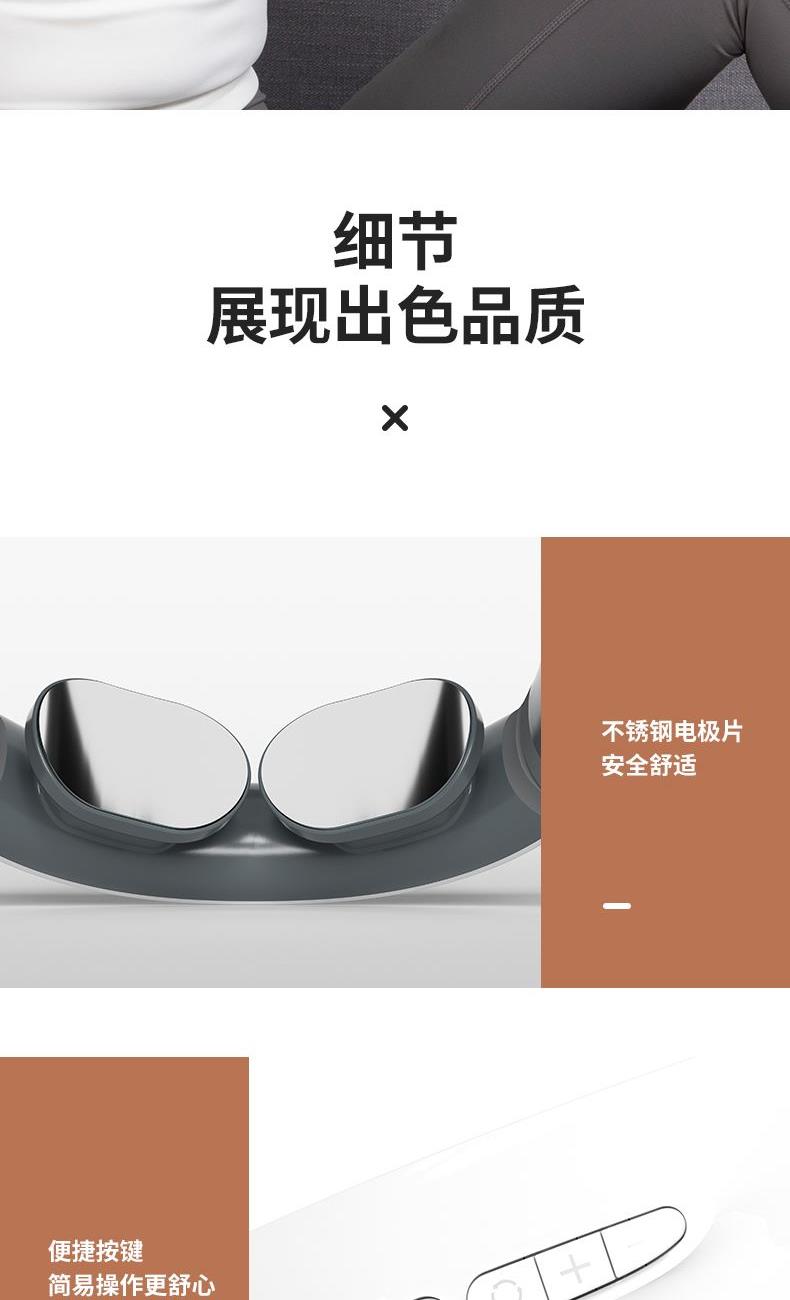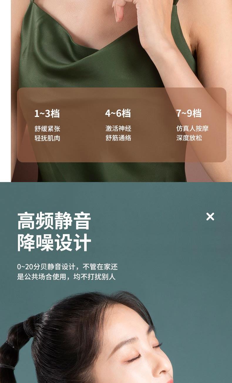 包装尺寸:184*56*184mm 外箱尺寸:590*385*580mm 单台毛重:0.21Kg 包装材料:彩包 额定电压:3.7V~ 额定功率:4W 微电流脉冲按摩 | 6种模式 9档力度 | 轻巧又便捷。