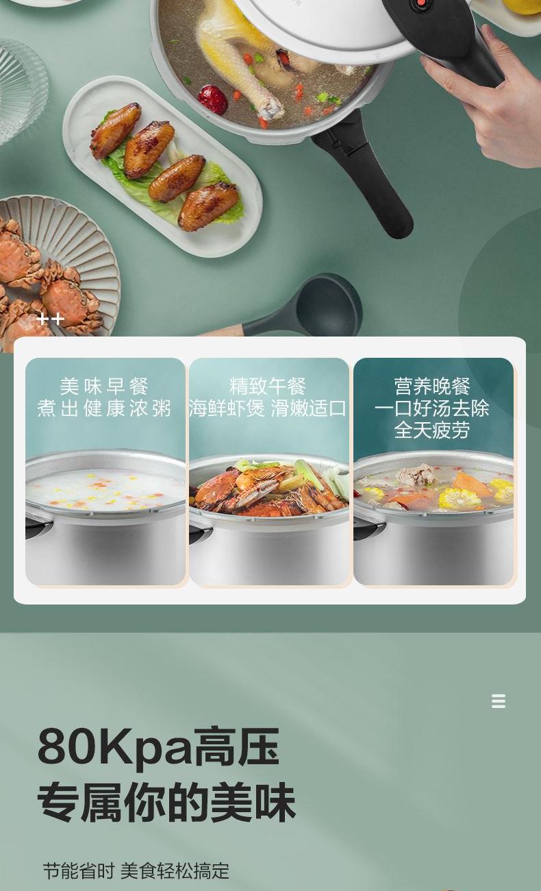 材质 - 铝合金 规格 - 22cm/5.3L(容积) 内箱 - 445*285*210mm(邮购盒) 外箱 - 590*465*450mm 净重 - 7.3kg 毛重 - 10.6kg 1、优质铝合金基材,健康保护膜处理,表面细腻典雅,易清洁。 2、多重保险保护,使用安全,营养更美味。 3、锅盖贴心设计储水槽,防溅蓄流,清洗方便。 4、人体工程学手柄设计开合轻松,握感舒适;