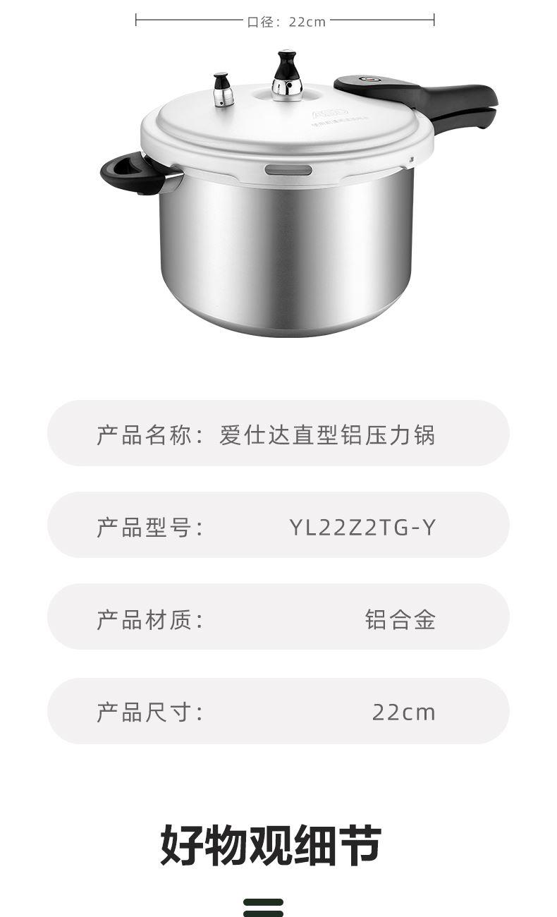 爱仕达YL22Z2TG-Y直型铝压力锅