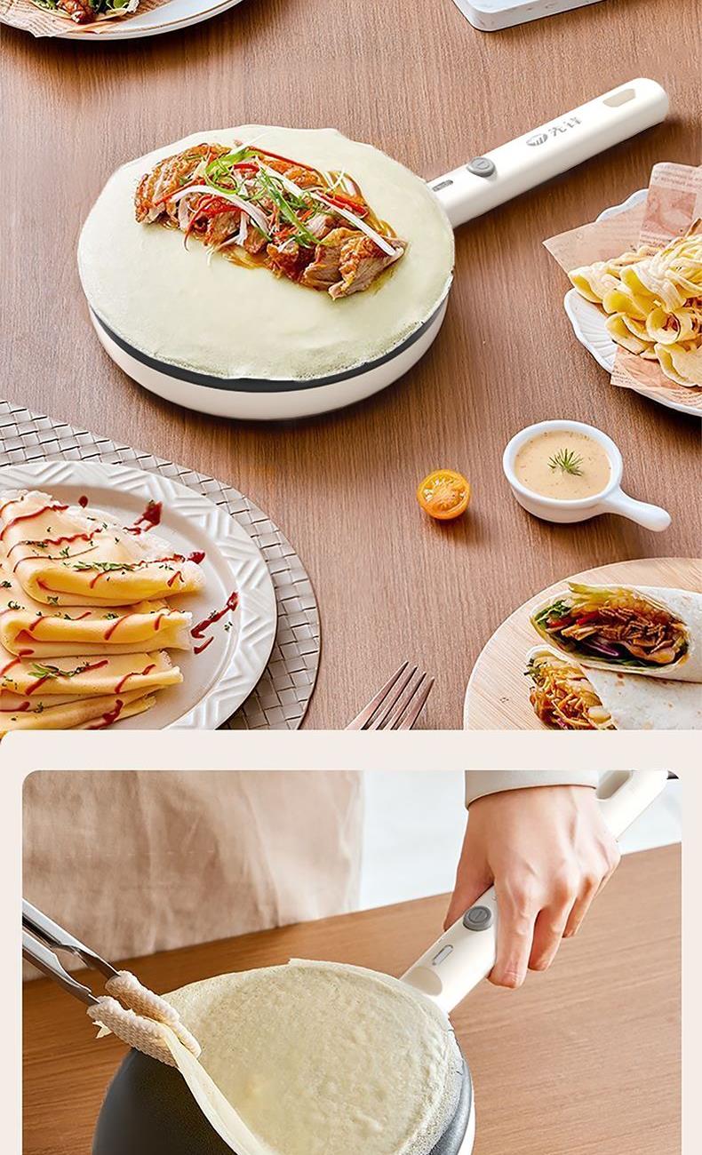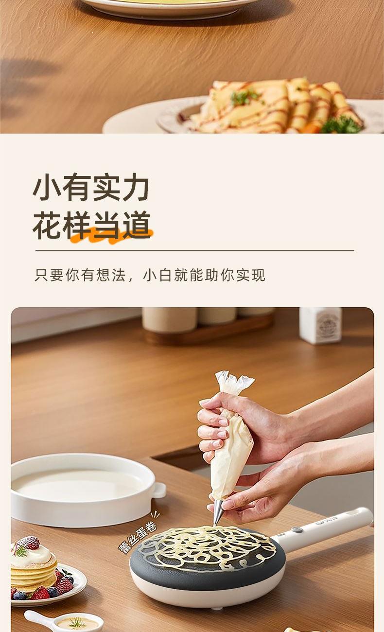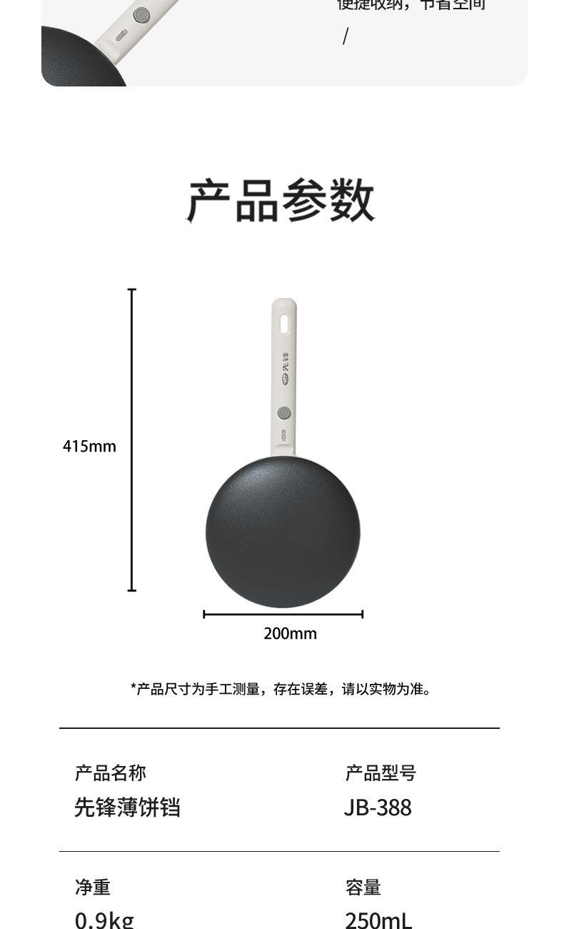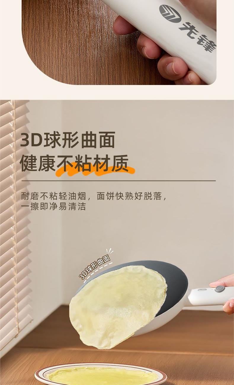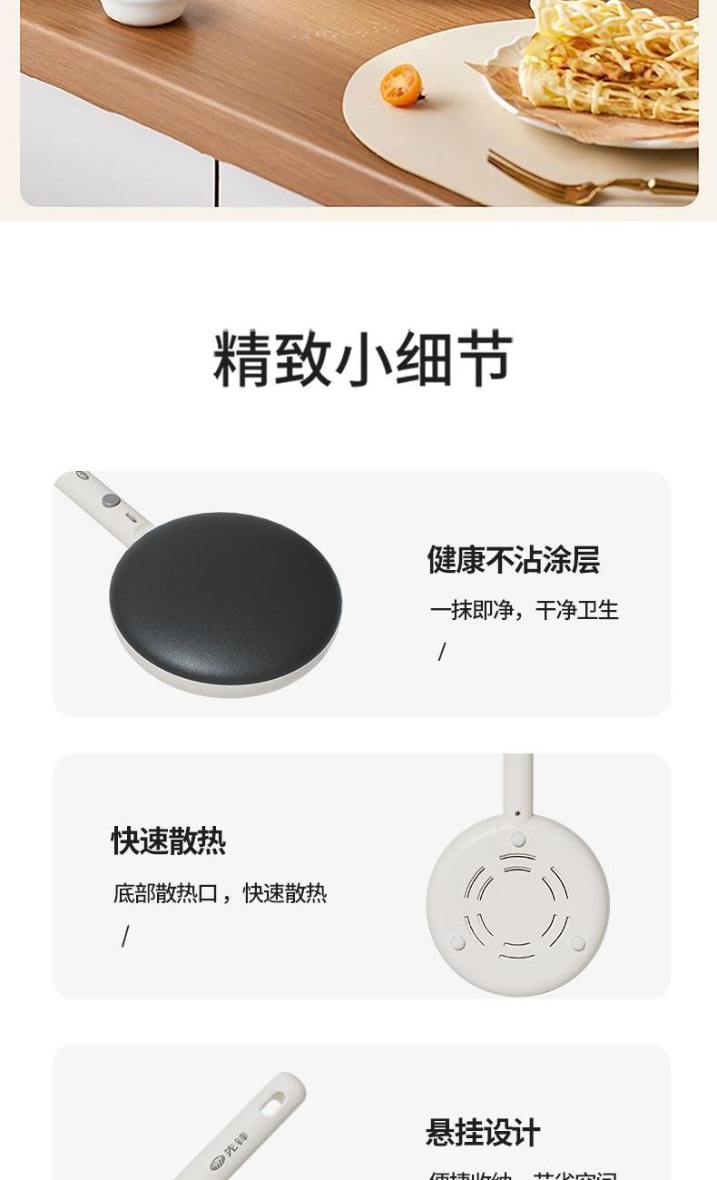 彩包尺寸:246*84*441mm 外包尺寸:510*445*460mm 单台毛重:1kg 单台净重:0.9kg 额定电压:220V 额定频率:50HZ 产品条码:6977197070670 包装材料:彩盒+外箱 功率:600W 食品级不粘涂层,均匀加热不粘不糊,底部散热口,快速散热,把手底部挂钩 方便收纳,工作灯设计 一键开关