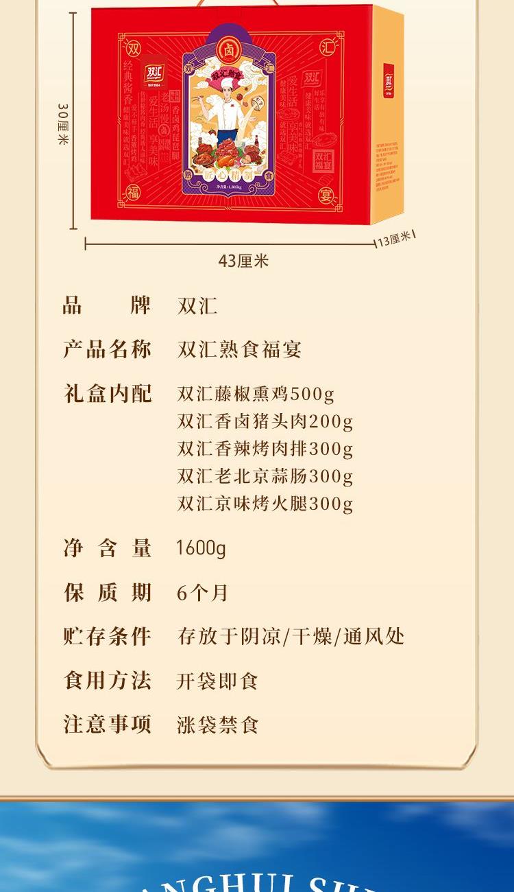双汇藤椒熏鸡500g 双汇香卤猪头肉200g 双汇香辣烤肉排300g 双汇老北京蒜肠300g 双汇京味烤火腿300g