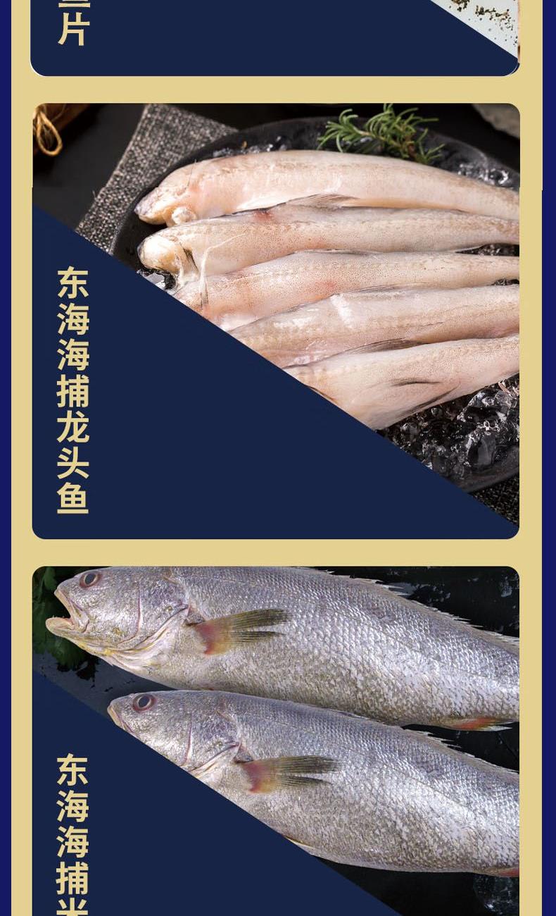 印度石斑鱼500g*1袋 东海海捕龙头鱼500g*1袋 深海狭鳕鱼片500g*1袋 东海无冰带鱼段500g*1袋 冷冻墨鱼花400g*1袋 东海海捕米鱼500g*1袋 【海味臻藏,礼遇八方】 甄选深海珍鲜锁住原味,宴席家宴彰显尊贵心意,商务礼赠承载诚意祝福。